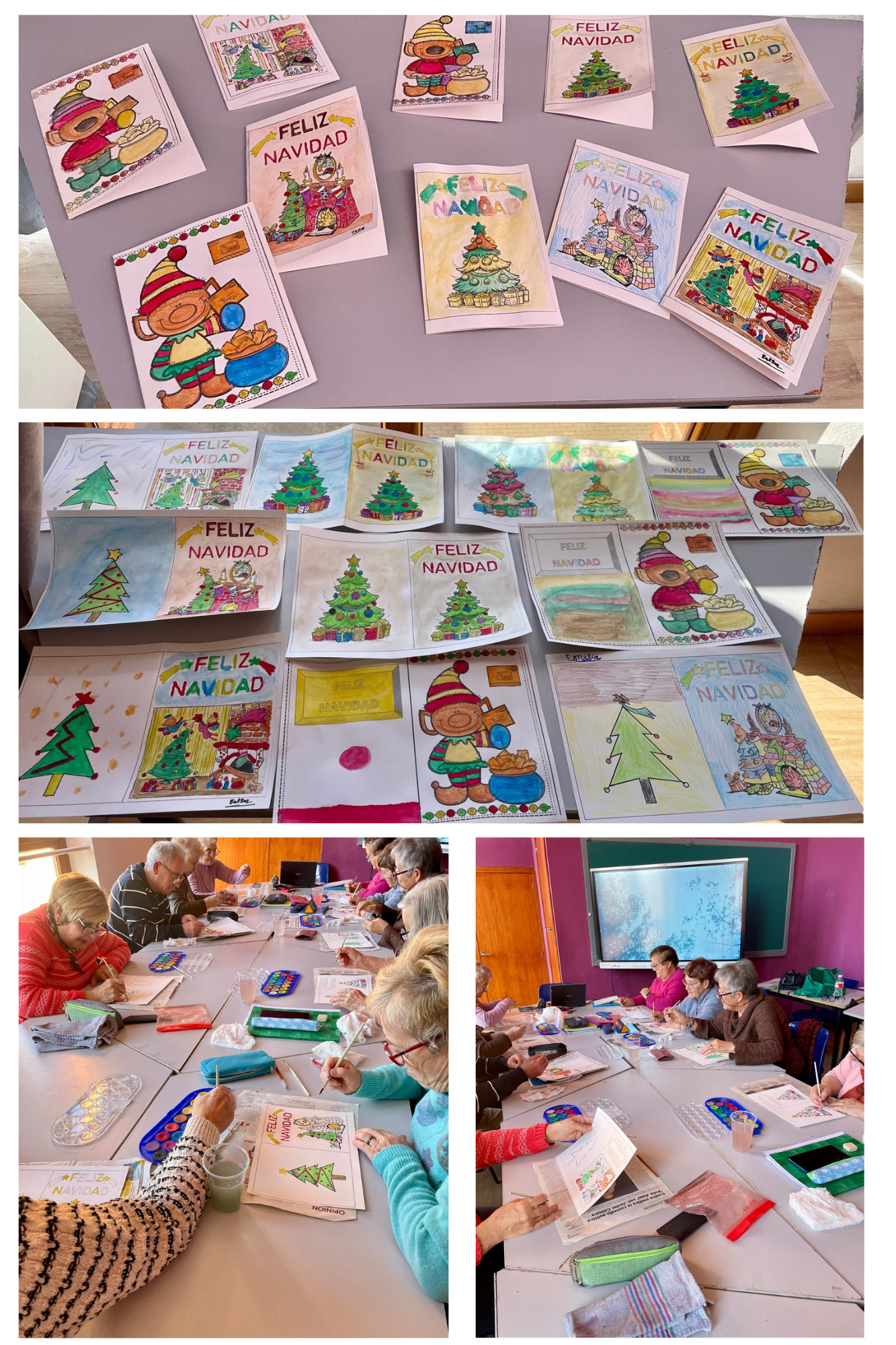 Los alumnos/as de Dueñas realizando felicitaciones navideñas con acuarelas.
